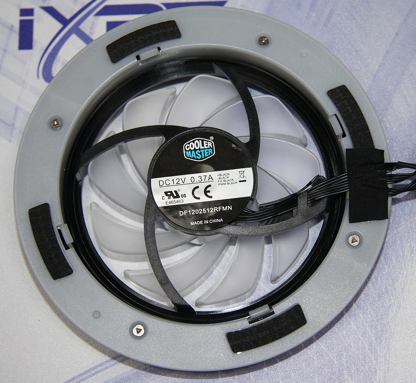 ОписаниеПоставляется процессорный охладитель Cooler Master MasterAir G100M в красочно оформленной коробке из тонкого гофрированного картона. На внешних плоскостях коробки не только изображен сам продукт, но и приведено его описание и технические характеристики. Надписи преимущественно на английском, но основные особенности перечислены на нескольких языках, в том числе и на русском. Кулер в сборе помещен в защитное гнездо из вспененного полиэтилена, а крепеж и аксессуары расфасованы в пакетики и убраны в отдельную картонную коробочку. В комплекте идет инструкция по установке в виде книжки-гармошки хорошего полиграфического качества. Информация в основном представлена в виде картинок и в переводе не нуждается. На сайте компании инструкцию в каком-либо «электронном» виде мы не нашли. Кулер имеет необычную конструкцию. Его центральная часть представляет собой пустотелый цилиндр из меди, заполненный порошком из меди и рабочей жидкостью. Если снять вентилятор, то будет видно запаянную трубку, через которую цилиндр заполняется рабочей жидкостью (видимо, после вакуумирования). К боковой поверхности цилиндра припаяны радиальные ребра из никелированного алюминия. Нижний торец цилиндра является теплосъемником, непосредственно контактирующим с процессором. При нагреве нижнего торца рабочая жидкость испаряется, забирая тепло, и конденсируется, отдавая тепло, на более холодных поверхностях, а именно на верхнем торце и на боковой поверхности. В зону испарения сконденсированная жидкость возвращается по порам наполнителя (порошок из меди) под действием капиллярных сил. По своей сути центральная часть кулера является тепловой трубкой большого диаметра, что дало повод производителю называть ее тепловой колонной. Нижняя плоскость цилиндра сошлифована, но не отполирована. До установки она защищена пластиковой пленкой. Диаметр подошвы 45 мм. В ее центральной части есть заметное углубление, которое, вероятно, образовалось из-за прогиба стенки при вакуумировании цилиндра. Это, конечно, не очень хорошо, так как в этом месте слой термопасты будет толще, что ухудшит теплопередачу от процессора к кулеру. Преднанесенного термоинтерфейса нет, но производитель приложил к кулеру небольшой шприц с фирменной термопастой. Забегая вперед, продемонстрируем распределение термопасты после завершения всех тестов. На процессоре: И на подошве теплосъемника: Видно, что термопаста распределилась очень тонким слоем в местах соприкосновения подошвы и процессора, но в центральной части слой термопасты толще. Отметим, что свежая и после тестов данная термопаста относительно жидкая, липкая и чуть тягучая, она выдавливается гораздо легче, чем счищается. Крыльчатку вентилятора окружает скошенный кольцевой кожух (черный матовый пластик), направляющий весь поток воздуха на обдув ребер радиатора. На нижней части кожуха есть накладка из полупрозрачного белого пластика. На радиаторе вентилятор закреплен с помощью пластиковых защелок. В местах соприкосновения ребер и накладки есть прокладки из пористой резины, что исключает дребезг из-за неплотного прижима вентилятора к ребрам. Металлические детали крепежа на процессор изготовлены из закаленной стали и имеют стойкое гальваническое покрытие. Площадка на нижнюю стороны системной платы изготовлена из прочного пла