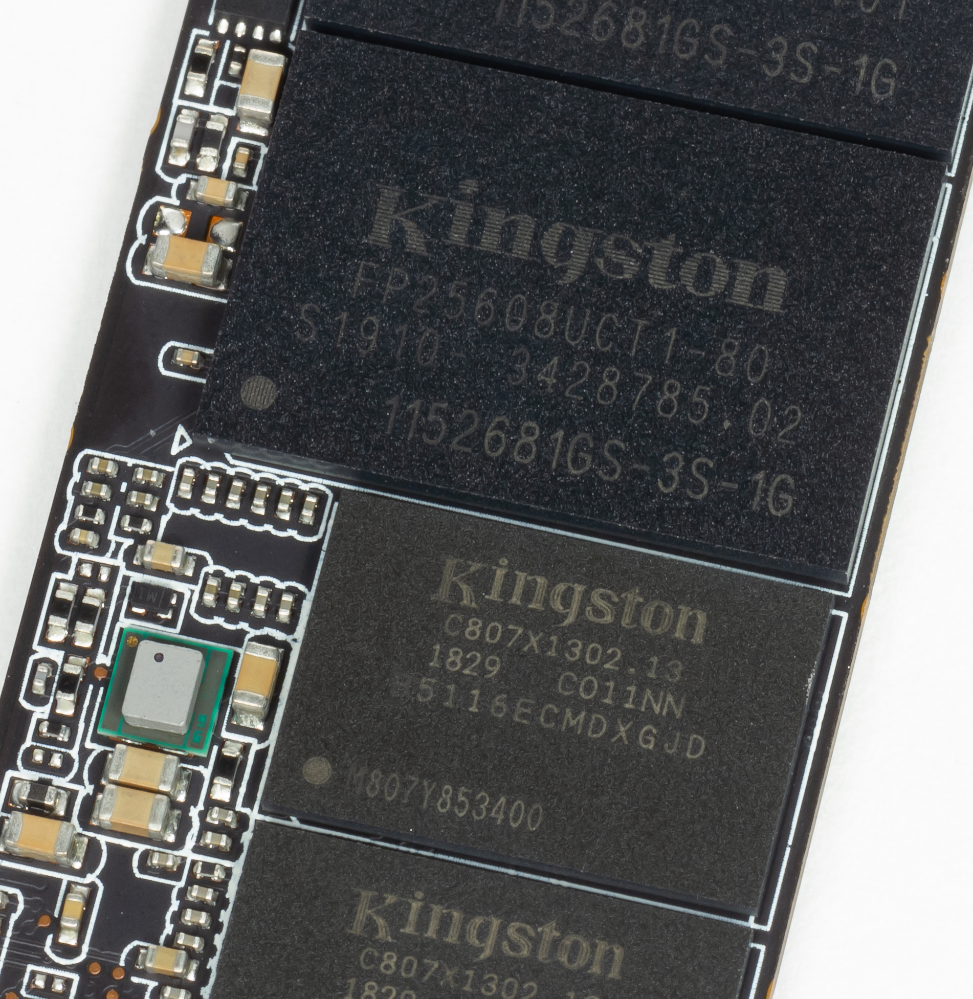 Но, если не считать редкую для данного контроллера память, сходств с другими моделями на нем больше, чем различий. Например, Kingston воспользовался и возможностью использования под DRAM-буфер двух микросхем DDR3L-1866, т. е. с контроллером DRAM обменивается данными по шине шириной 32 бита, а не 16. А вот суммарная емкость буфера меньше «традиционного» мегабайта на каждый гигабайт емкости ровно вдвое, но этим сейчас занимаются многие производители — и без какого-либо ущерба для производительности.