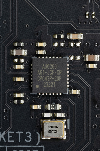 26 линий PCIe оказались занятыми (20 PCIe 4.0 + 6 PCIe 3.0). В чипсете Z790 связь с аудиокодеками новее, чем Realtek ALC1220, идет через USB-порт. Также по одной линии USB 2.0 расходуется на поддержку BT (при наличии слота M.2 (key E), на контроллер подсветки Aura, а также оба контроллера AU6260 для своих нужд используют сигнальные линии USB 2.0 Детально об этом ниже в разделе USB-портов.