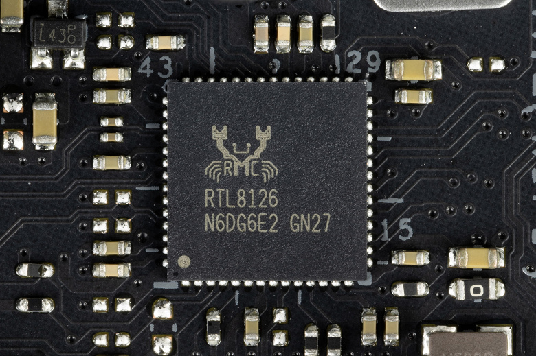 Материнская плата оснащена средствами связи хорошо. Имеется скоростной Ethernet-контроллер Realtek RTL8126, способный работать по стандарту 5,0 Гбит/с.